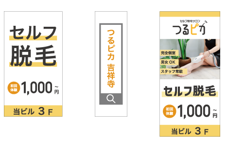 店舗袖看板の電飾シート貼り施工【サロン】 東京都武蔵野市吉祥寺にて新店舗の袖看板シート貼り施工をさせていただきました。 Before 施工前 Construction Details 施工内容 ① 電飾IJ出力シート/袖看板(両面) ② 電飾IJ出力シート/袖看板(側面) ③ 電飾IJ出力シート/袖看板(両面) 既存のアクリル板の上から電飾用のシートを貼ります。 Design proposal During 施工中 After 施工完了 お仕事のご依頼やご相談